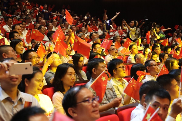 展演活动在全场高声共唱《我和我的祖国》的旋律中落下帷幕,“我和我的祖国,一刻也不能分割”,悠扬、嘹亮的歌声在剧场内久久回荡。